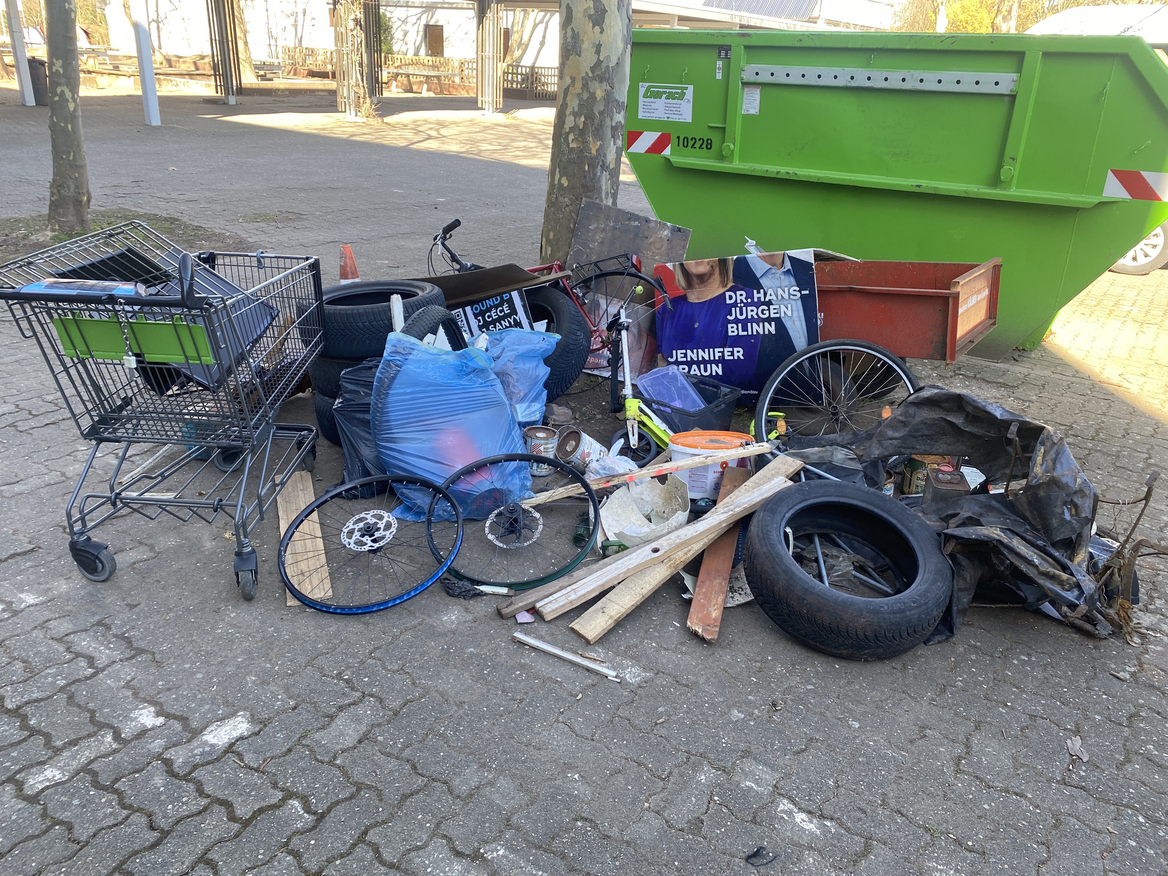 Die ESGler staunten nicht schlecht, dass die gesammelten Müllberge auf dem Schulhof ungeahnte Höhen erreichten. Von halben Fahrrädern über Autoreifen, Einkaufswagen und einigen unappetitlichen Utensilien war alles dabei. Selbst die Stadt hatte nicht mit so einem Fund gerechnet, sodass sich der Abtransport deutlich verzögerte, da man weitere Transporter anfordern musste.